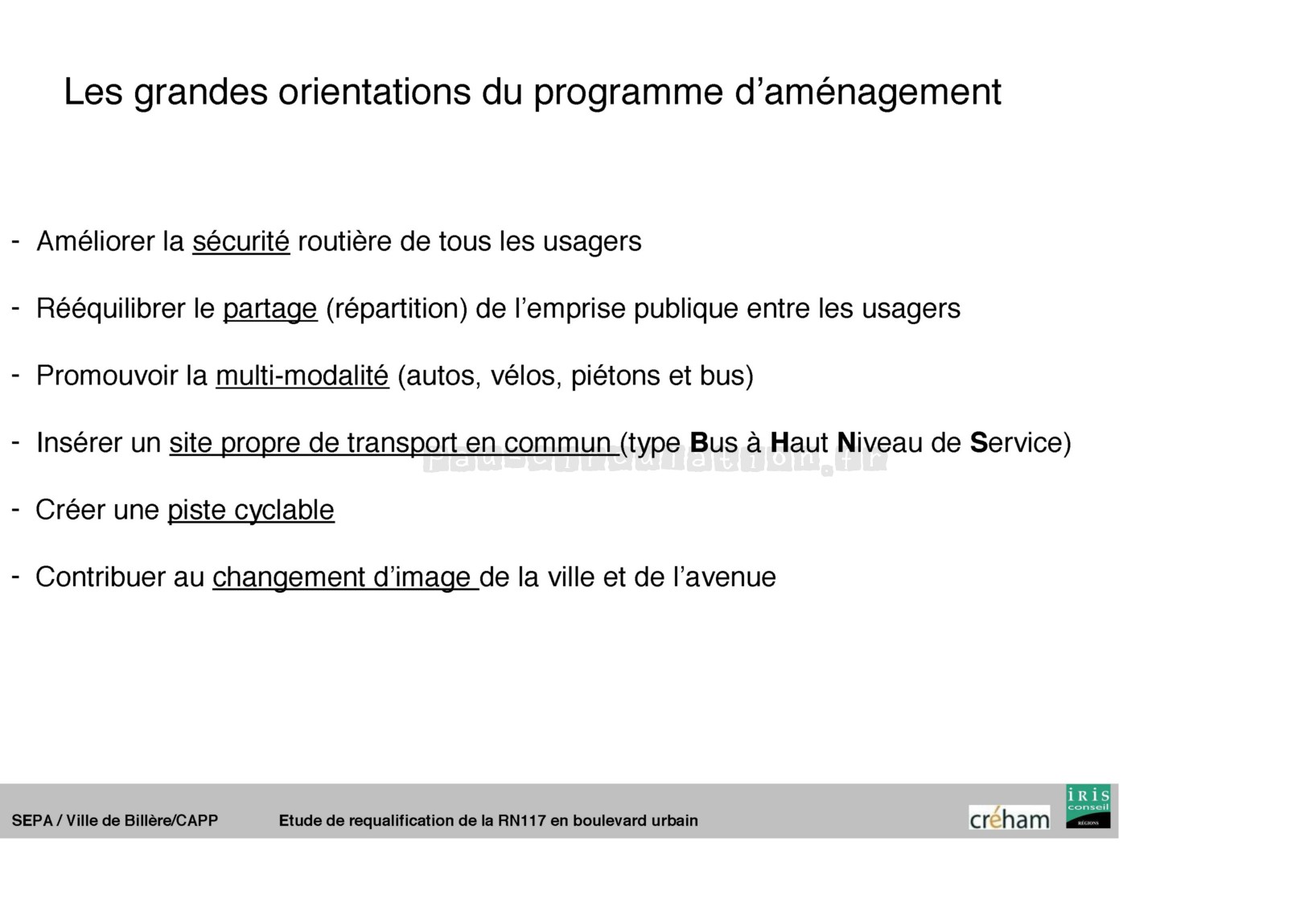 L’idée générale est d’installer sur ce grand axe de circulation, une nouvelle entrée de ville avec comme aménagements, un parking relais, une gare intermodale, une reconstruction de l’urbanisme avec des structures d’habitations contenant des commerces au rez de chaussée et des logements à l’étage.