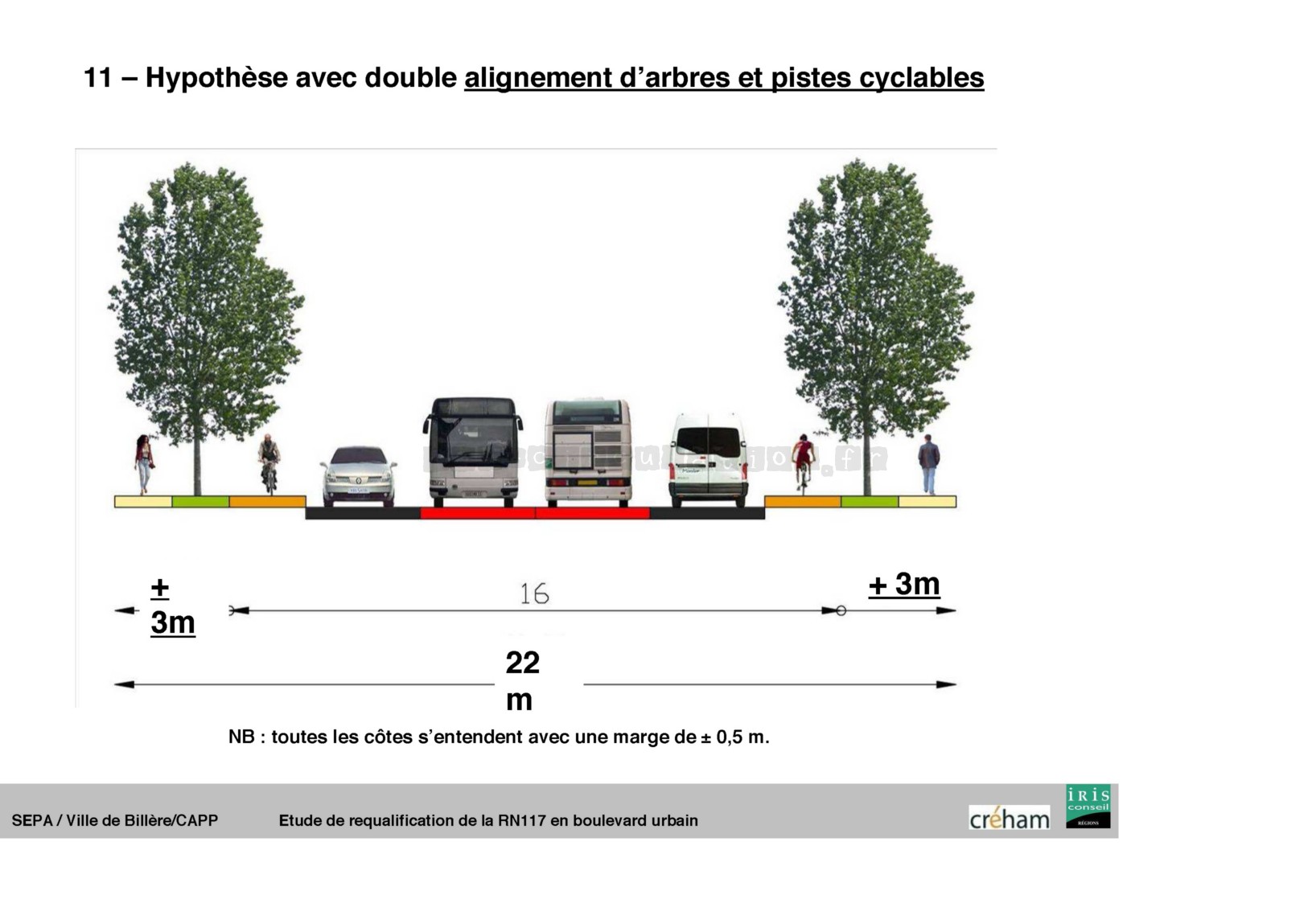Ce projet de rénovation de voirie commence par un rétrécissement de la chaussée (actuellement 16m de large), afin d’améliorer les déplacements durables avec un agrandissement des trottoirs pour les piétons et deux pistes cyclables bilatérales. Les transports en commun circuleront en site propre et seront donc prioritaires par rapport aux autres véhicules.